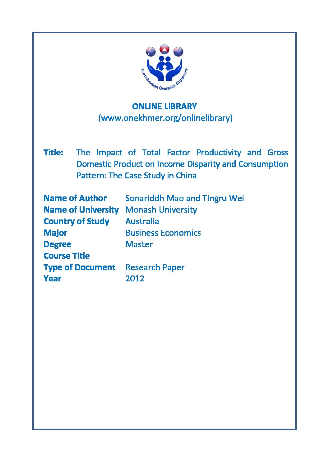The Impact of Total Factor Productivity and Gross Domestic Product on...