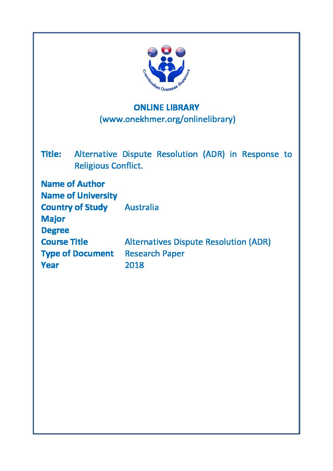 Alternative Dispute Resolution (ADR) in Response to Religious Conflict