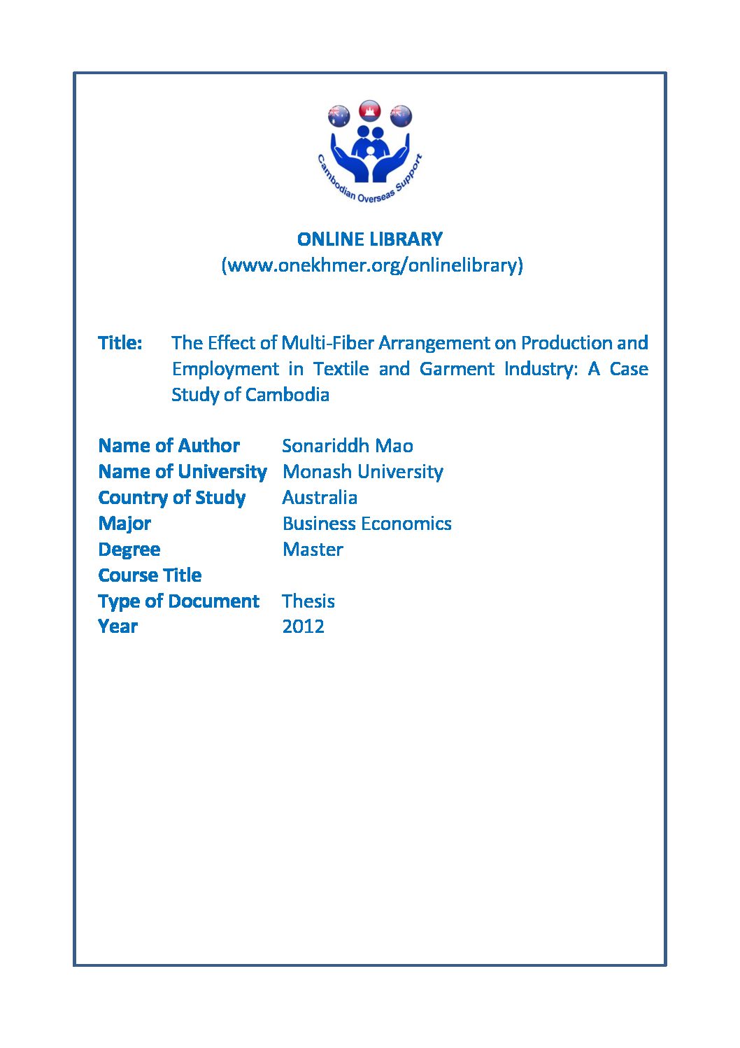 The Effect of Multi-Fiber Arrangement on Production and Employment in Textile...