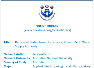 Reform of State Owned Enterprise, Phnom Penh Water Supply Authority