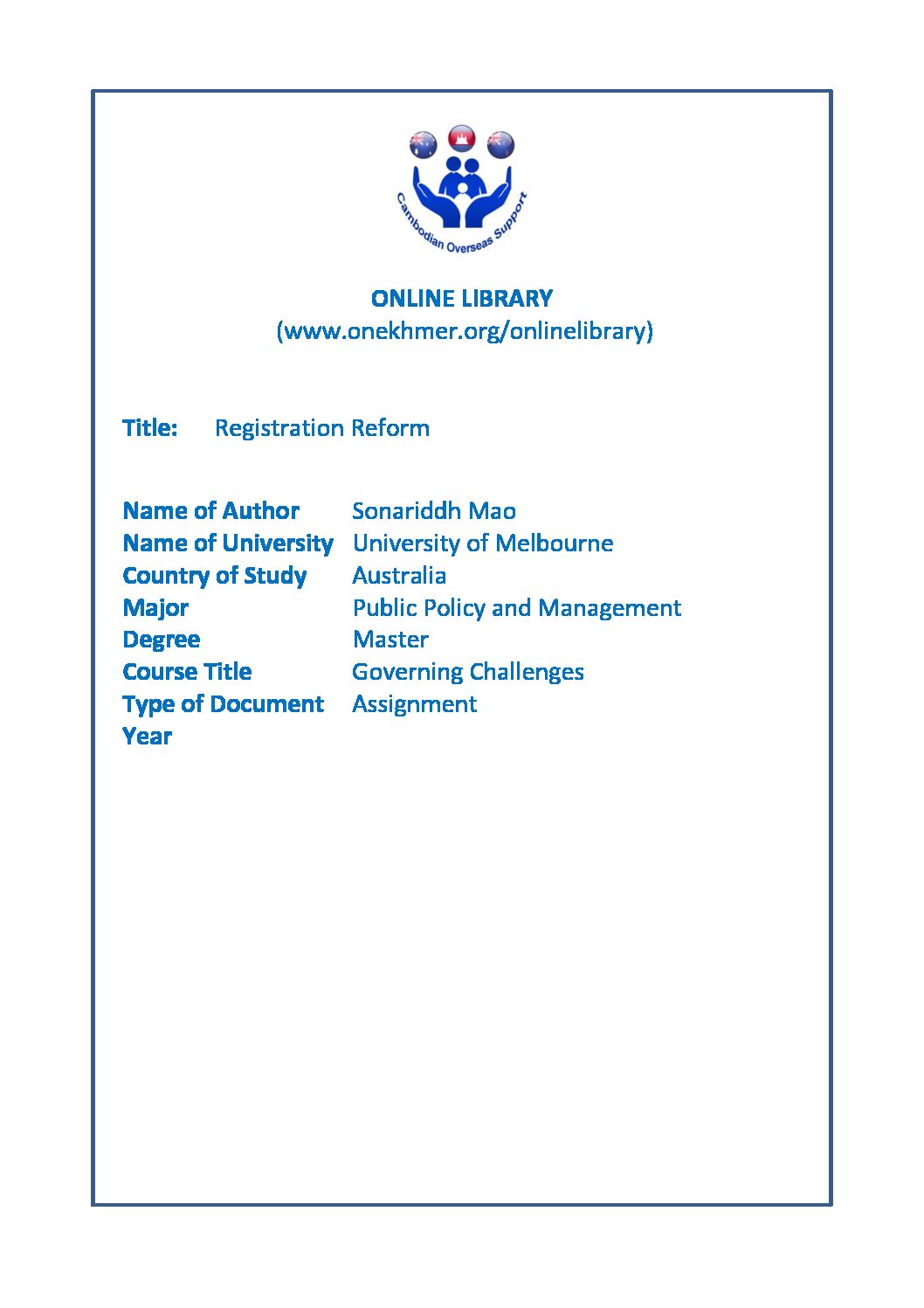 Integration of Democratic Development Principles in Cambodia’s Environmental Code: Case studies,...