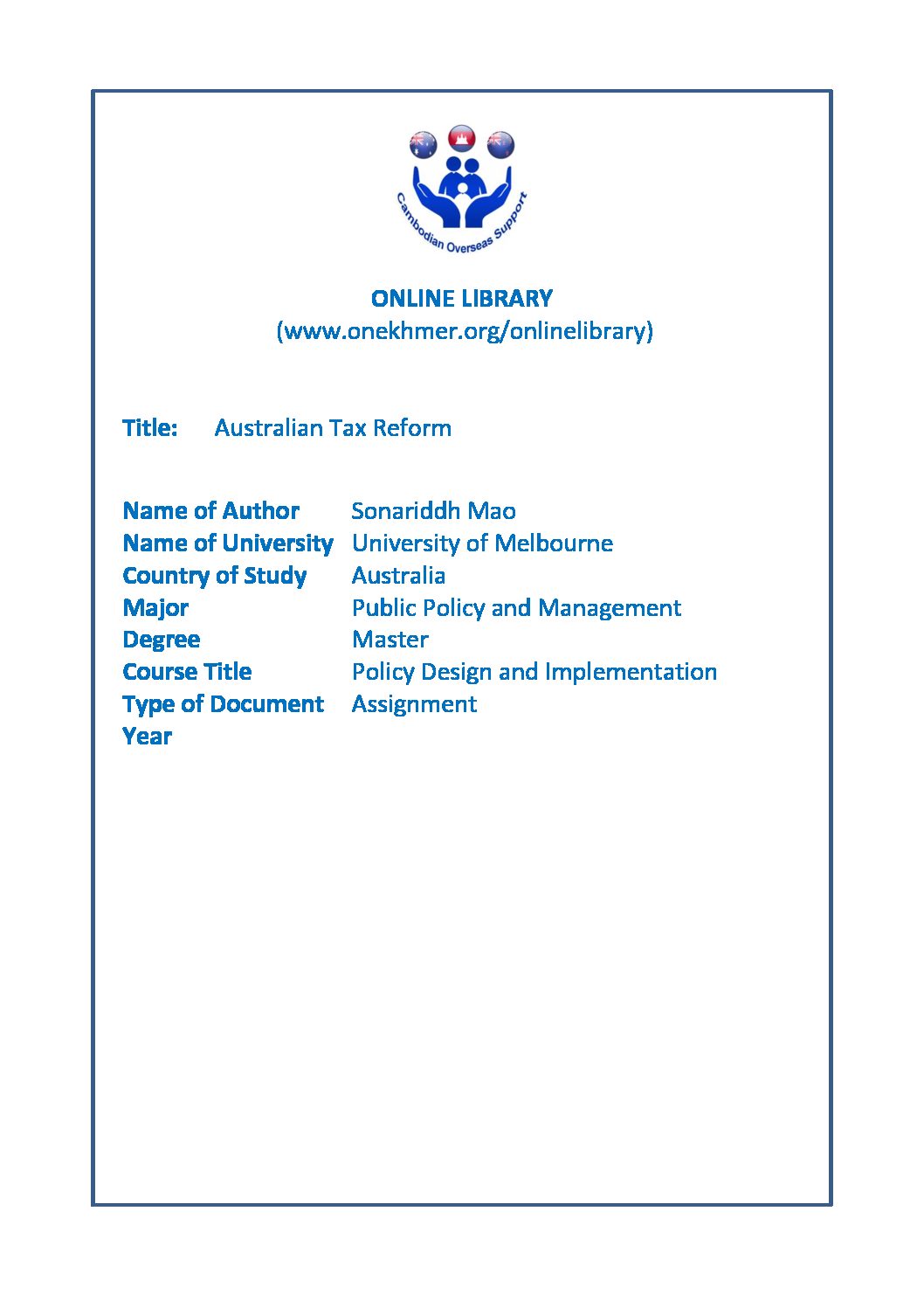 Australian Tax Reform